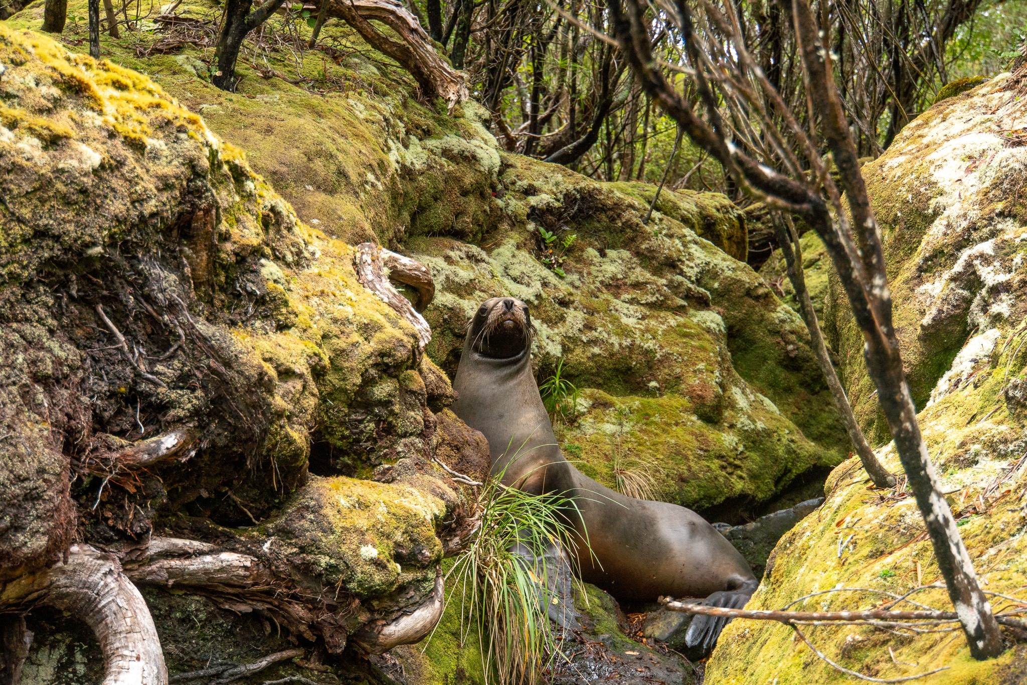 Pakake rest, nurse pups, and hide in the ngahere/ forest