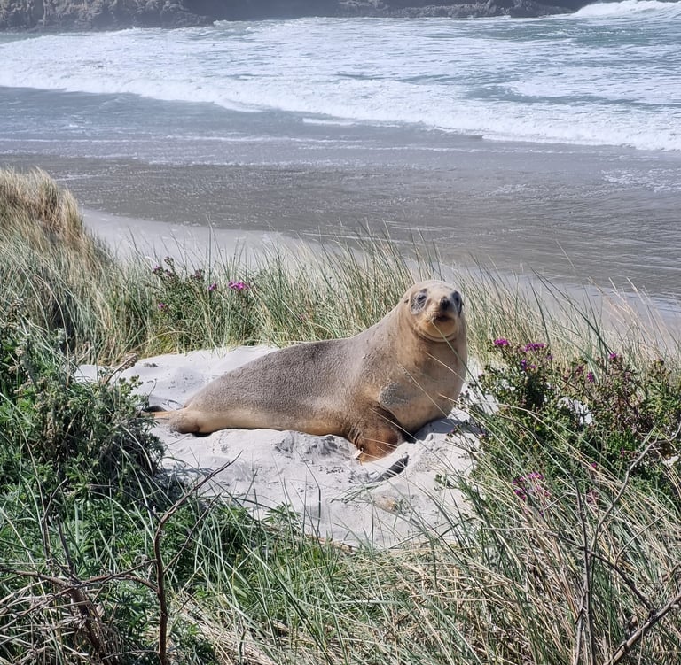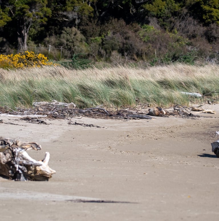 Pakake rest, nurse pups, socialise, and play on the takutai/coast