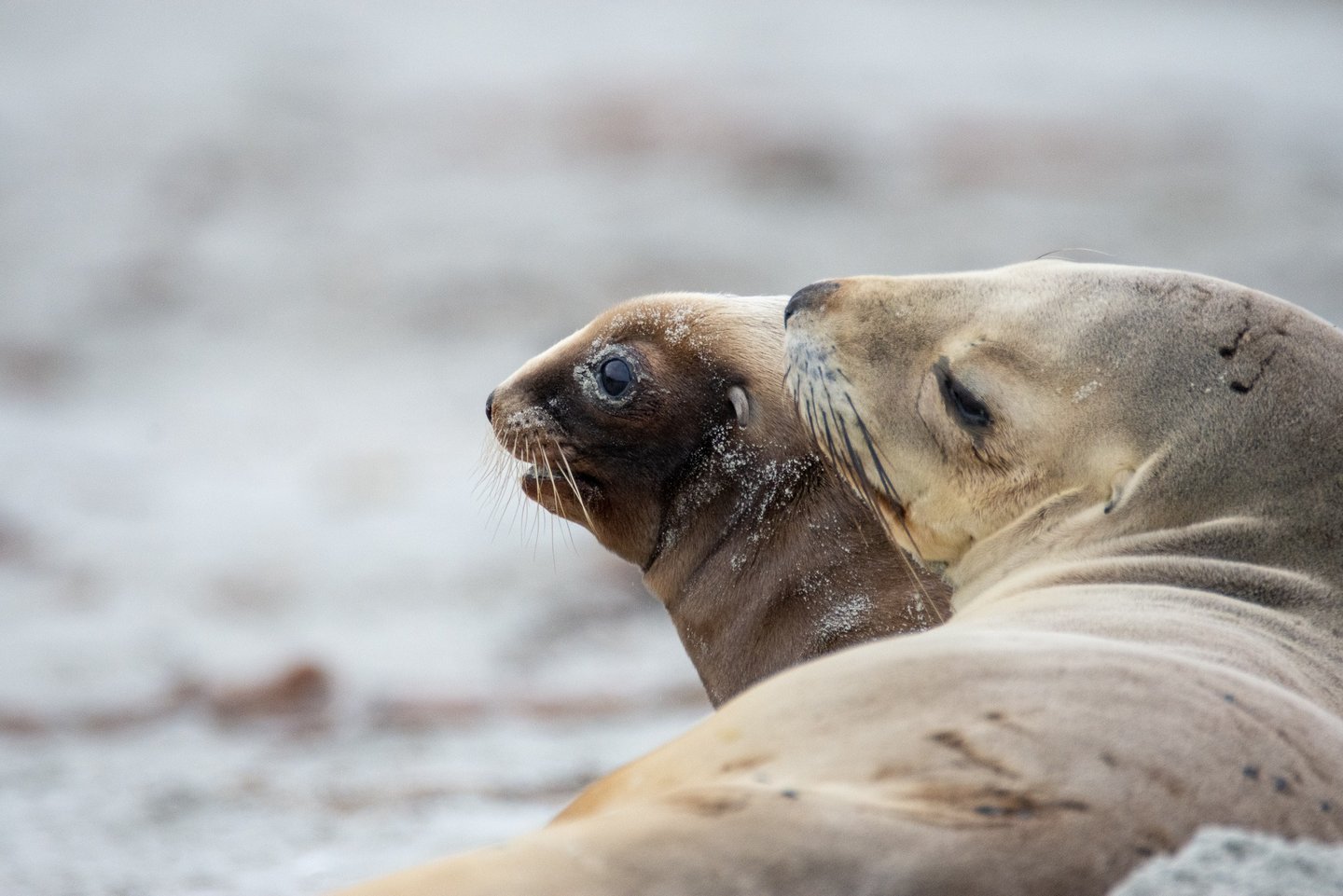 Parker E, 1998. Two female New Zealand sea lions and their pups on the mainland, Otago Peninsula.